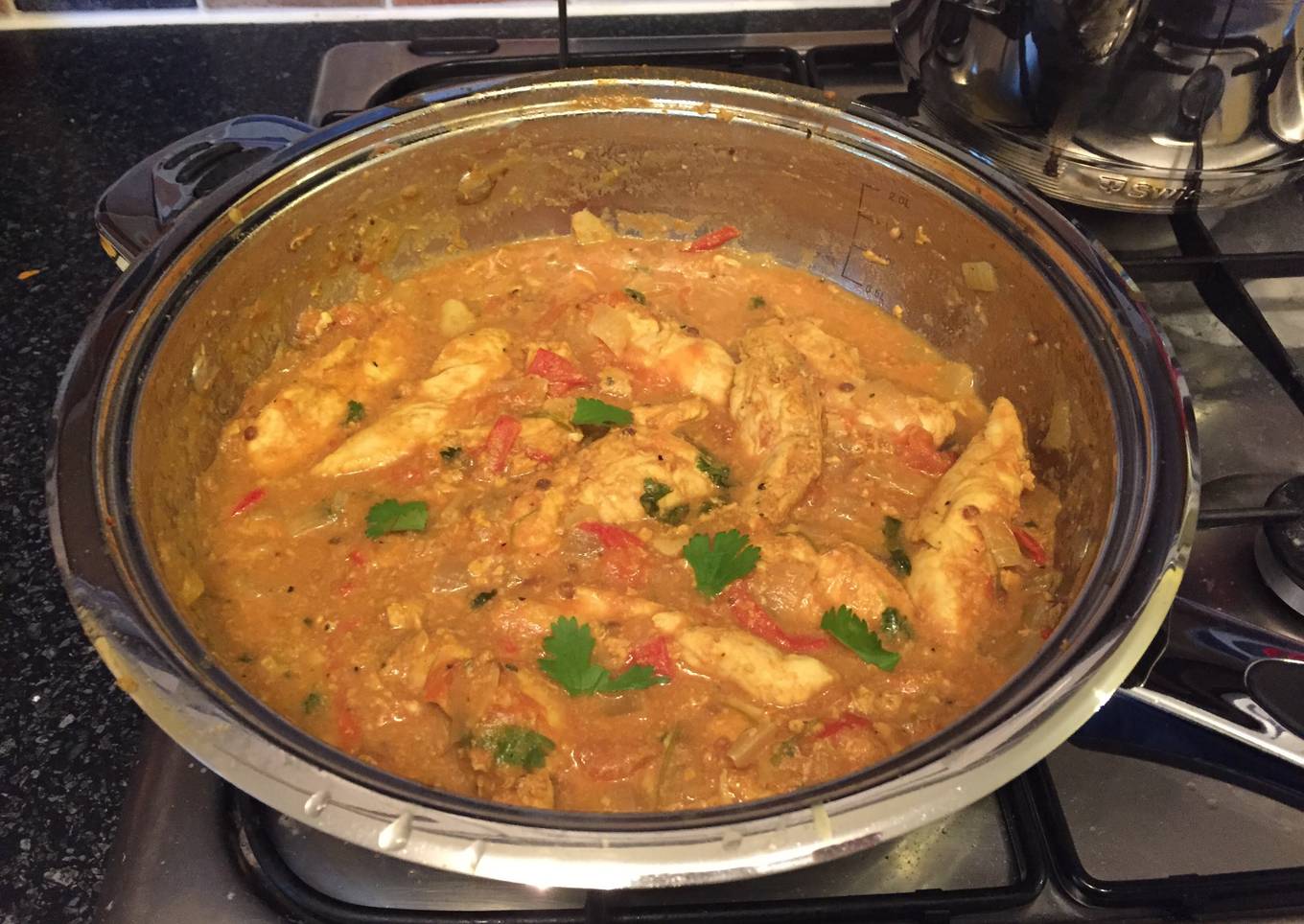 - Add the chicken, simmer for 5 minutes, then add the tomatoes, simmer for further 5 minutes. Add the tamarind, cover and simmer for another 10-15 on low heat. Add water if needed.