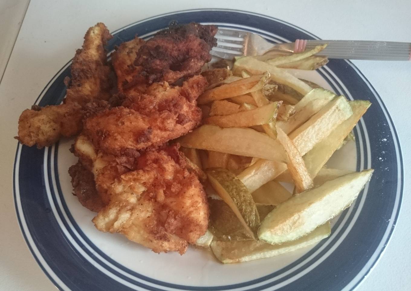 - Soak chopped up chicken tenders in egg mixture and then dip them in the powder. Place breaded chickens in searing hot oil and allow them to cook until golden brown.